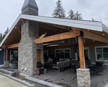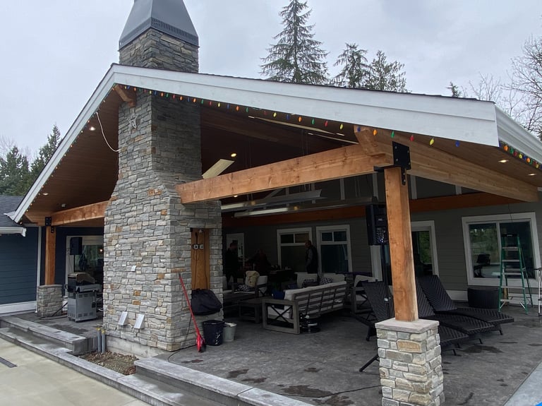This stunning extension demonstrates just how drastically stonework can improve a space. This fireplace is the focal point of this beautiful outdoor lounge/gathering space and the homeowners could not be more thrilled! The stone used is Pangaea New England Quarry Ledgestone.